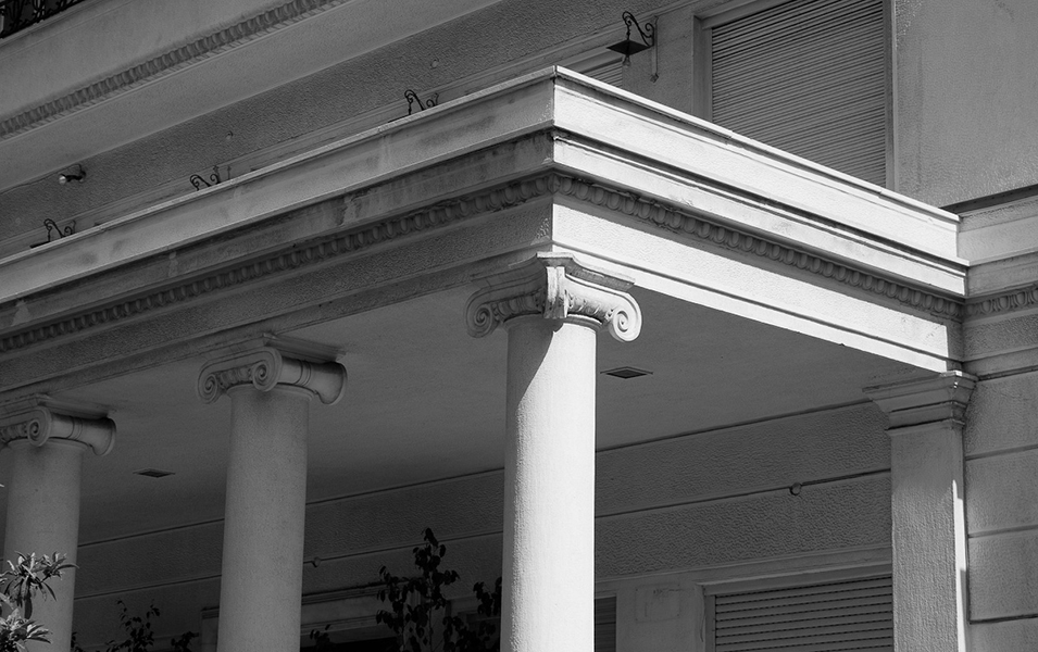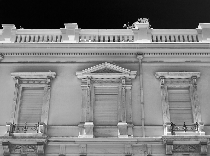 In this project I want to document a certain segment of the urban environment by narrating the relation between form and subject matter, the way they interact and create meaning from the historical, political, economic, and cultural points of view. I have chosen one of the most important boulevards in Athens, Basilissis Sofias, to explore the striking mixture between 19th century neoclassical buildings, characterised by elegance and aristocracy, and the 20th century neighboured constructions, which are very tall, obscure and severe. The essay develops from the relationship between light and shade, and allows us to discover hidden connections between structure and function.